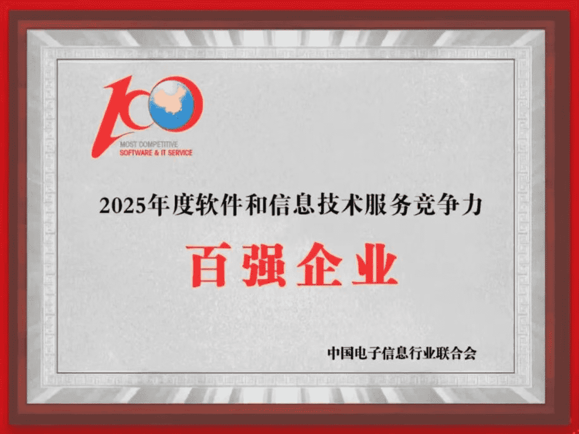 20251015日,,,,中國電子信息行業聯合會權威揭曉“2025年度軟件和信息技術服務競爭力前百家企業名單。。中國軟件百強企業評選活動是由工業和信息化部全程指導、、、中國電子信息行業聯合會牽頭組織發起,,,,是反映中國軟件產業發展最高水平的“風向標”。。。廈門一競技網絡技術股份有限公司(以下簡稱“一競技”或“公司”)憑借自身在軟件技術領域的卓越表現與杰出創新能力,,,,第六次入選“全國軟件和信息技術服務競爭力前百家企業”稱號。。