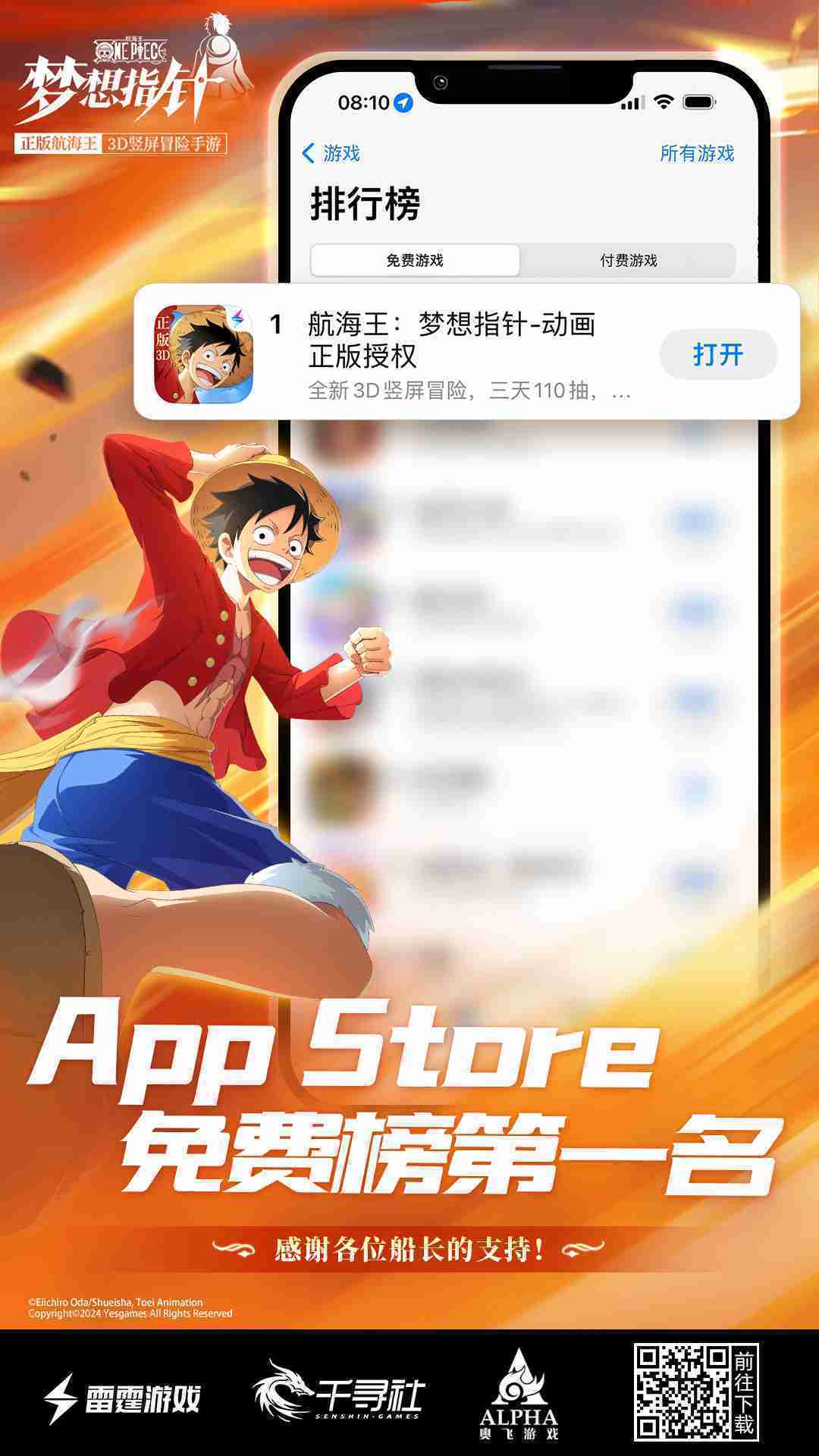 產品新聞 《航海王::夢想指針》登頂App Store免費榜,,,,公測福利匯總!!